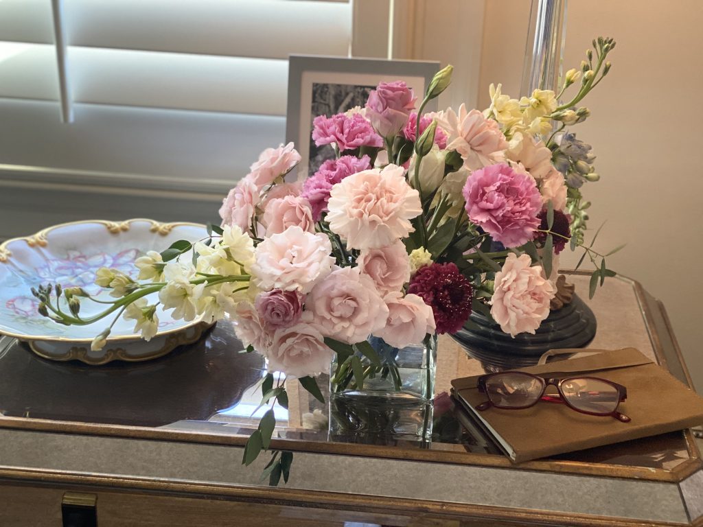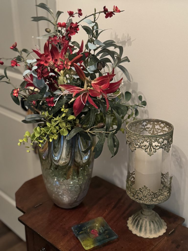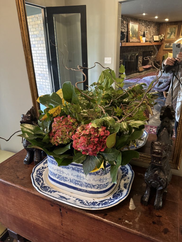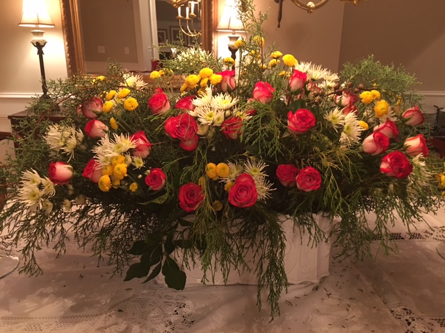 Arranging flowers is a joy for me and it is one of my natural abilities. I don’t dilly dally either. I love snipping respectfully from gardens and adding cut flowers. Sometimes I use artificial and dried stems and flowers to fill in as needed. Depending on season including fruits and vegetables for texture and balance is nice. I charge an hourly rate of $25 to $30 depending on project and location plus cost of materials.