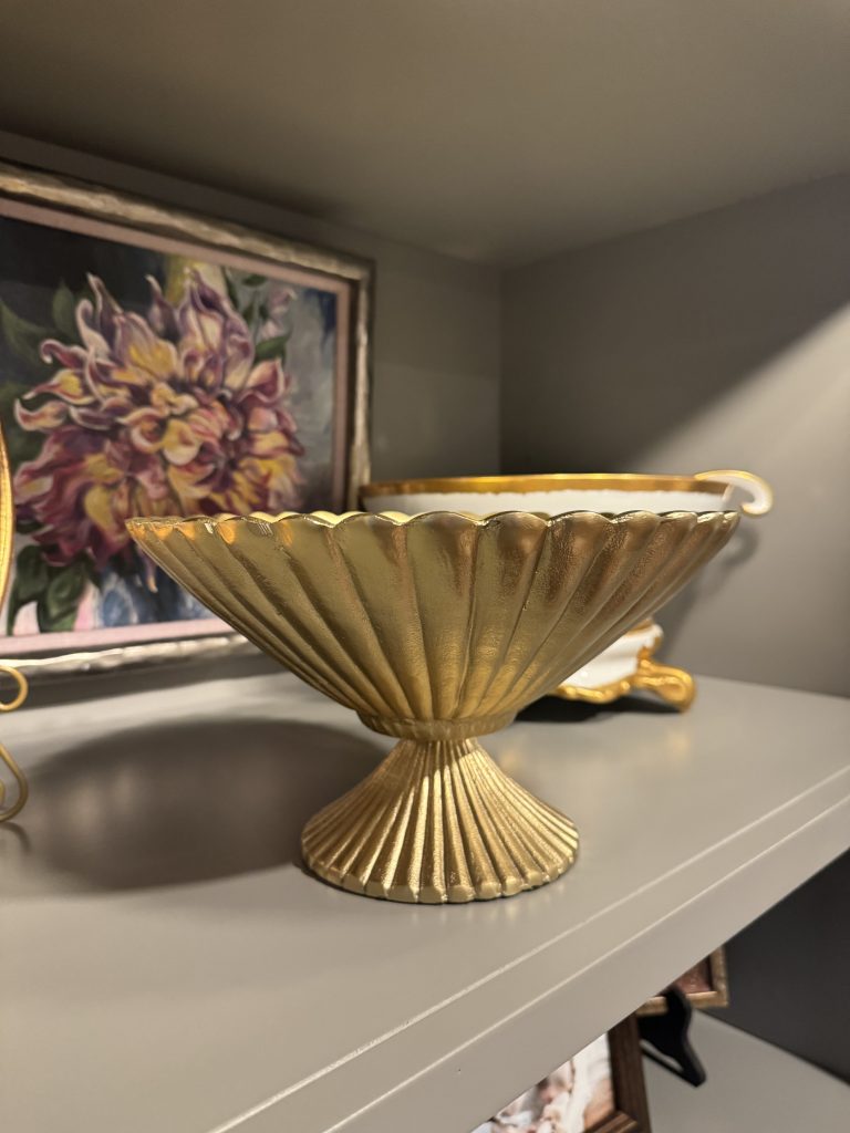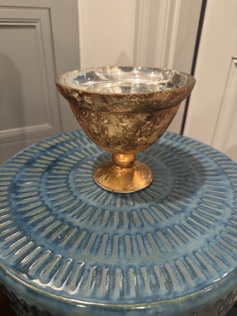 Metallic Glass Leaf Etched Light Gold/Silver Compote