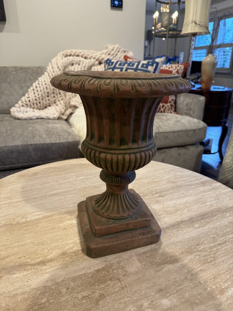 Greenish Gray Indoor/Outdoor Ribbed Planter, No Drain Holes