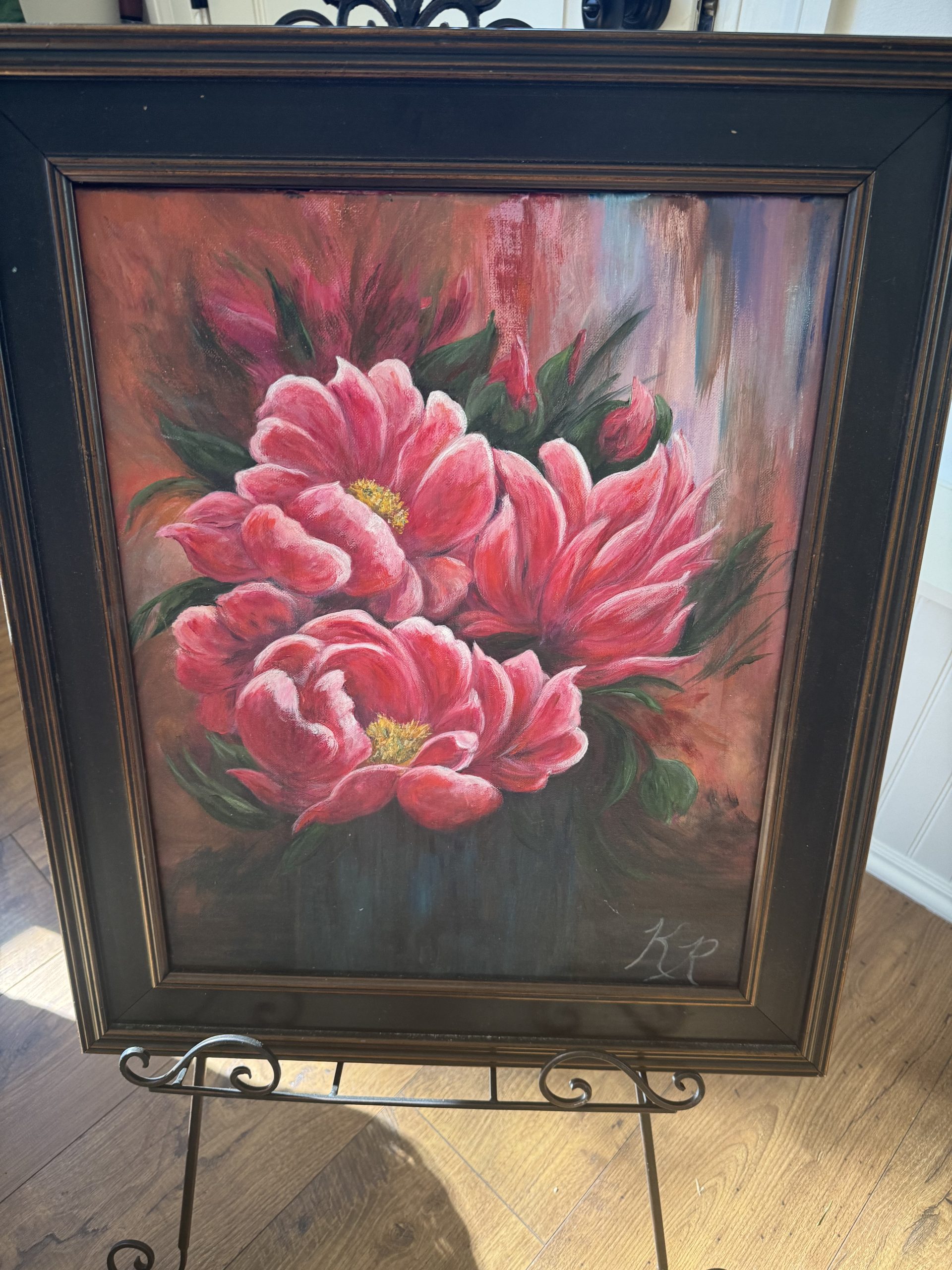 I was working off of a white Camellia bouquet but awaiting my second Granddaughter’s arrival. It continued to get pinker. A flower symbolizing loyalty, bravery and honor.