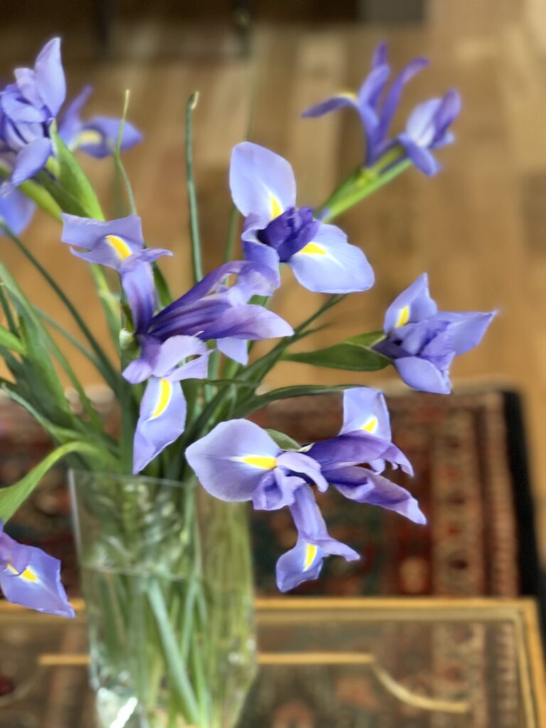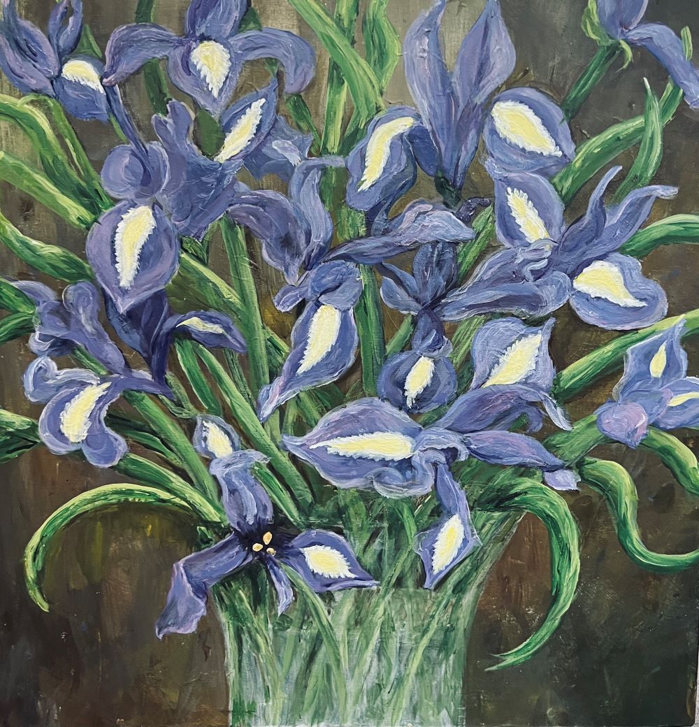 This is one of two pieces working from the same arrangement. I love walking through gardens and seeing these all clustered together. Irises symbolize the 25th wedding anniversary and the faithfulness, wisdom and commitment of being married for a quarter of a century. .