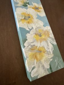 Part of my primary color series. It’s a nice size to go on a small wall. Yellow and Purple are complimentary colors.